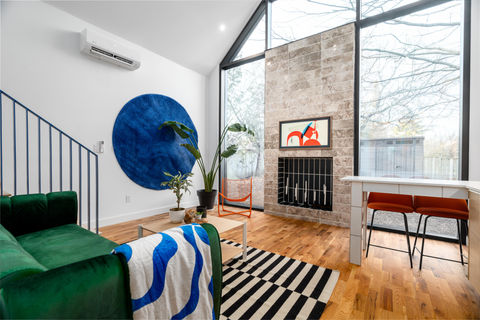 Thermally broken curtain wall and interior shower to a tiny home constructed in Oakridge.